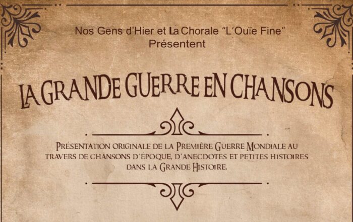 Rendez-vous dimanche 9 novembre à 16h à la salle des fêtes de Villenauxe-la-Grande pour assister à une présentation originale de la Grande Guerre. Une histoire,… Lire la suite LA GRANDE GUERRE EN CHANSONS