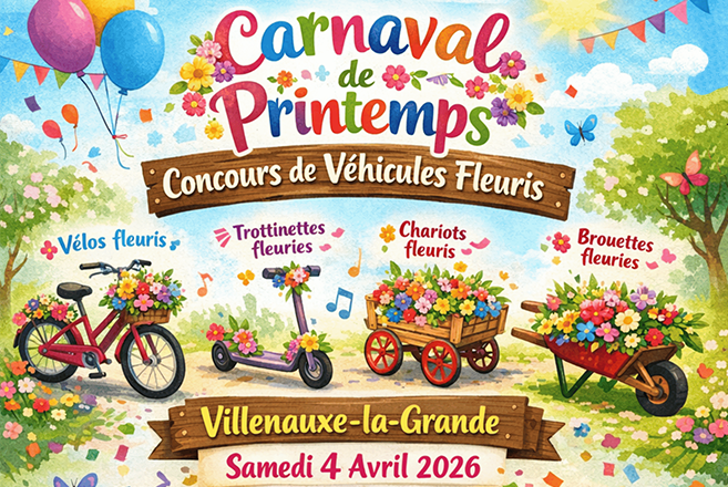 La commune de Villenauxe-la-Grande vous donne rendez-vous le samedi 4 avril 2026 à partir de 15h, sur le parvis de la mairie (place Clemenceau), pour… Lire la suite CARNAVAL & CONCOURS DE VÉHICULES FLEURIS