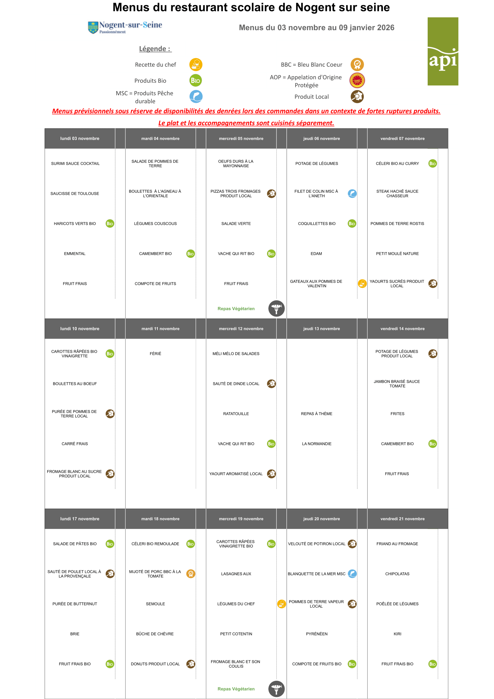 Voir l'image agrandie MENUS RESTAURANT SCOLAIRE DU 03/11/2025 AU 09/01/2026Michael Defosse2025-10-24T13:59:05+01:00Share This Story, Choose Your Platform!FacebookXRedditLinkedInTumblrPinterestVkEmail Articles similaires
