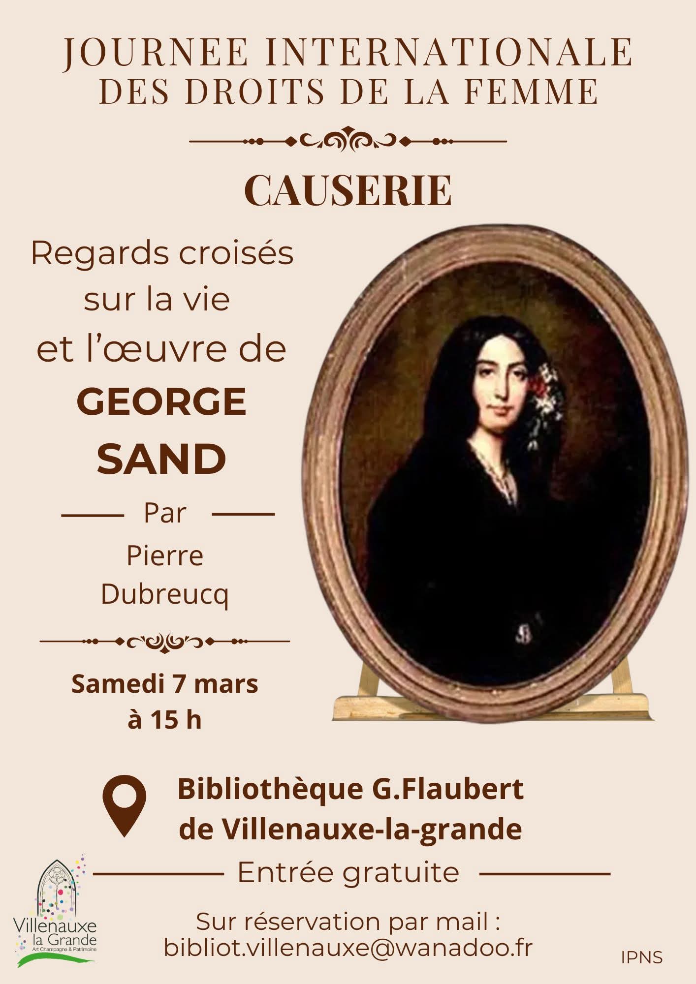 À l’occasion de la Journée internationale des droits des femmes, et dans le cadre du 150ᵉ anniversaire de la mort de George Sand, la bibliothèque vous invite à un rendez-vous culturel exceptionnel.